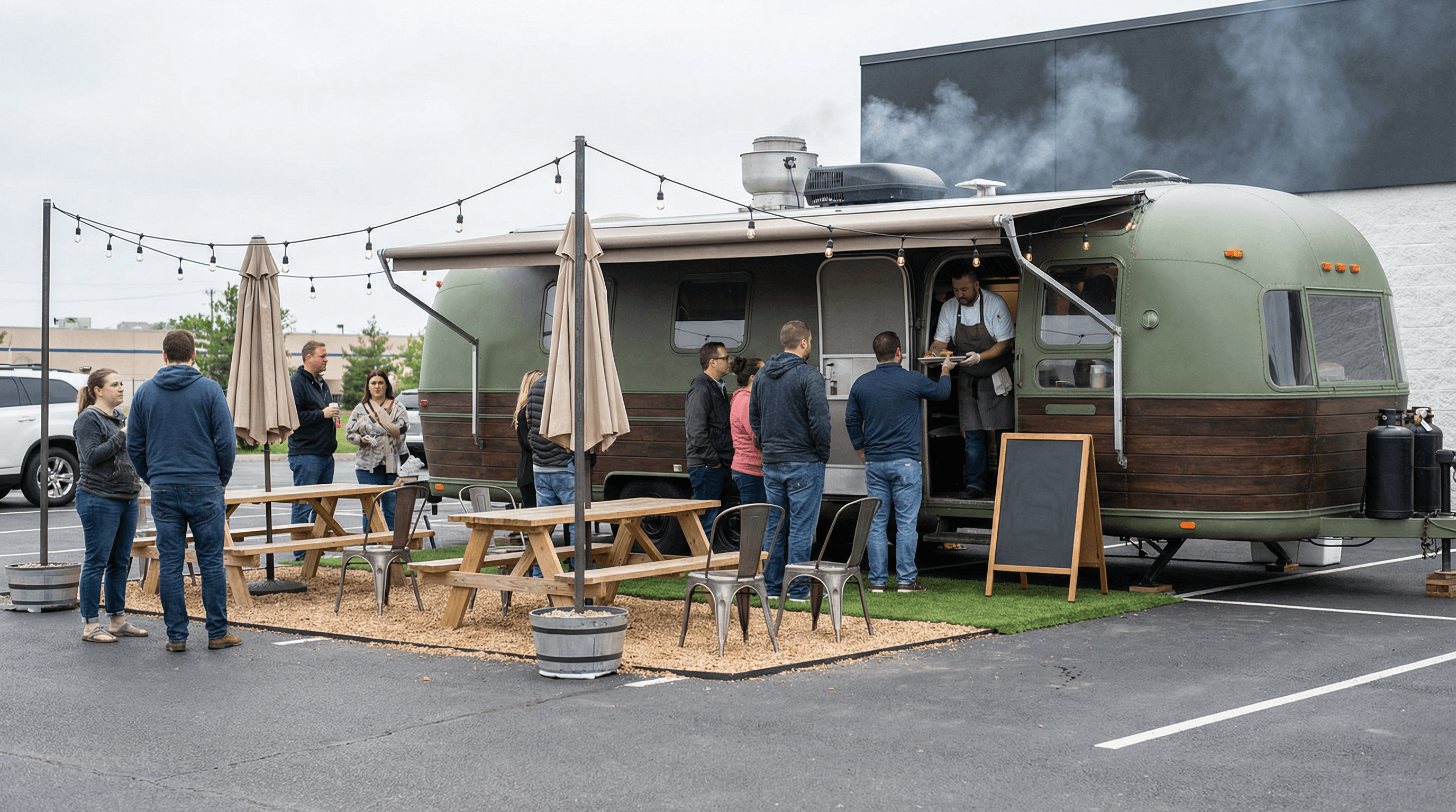 キッチンカーなら、駐車場1〜2台分のスペースがあれば即導入可能。厨房設備も内装工事も不要です。場所代(賃料)をいただくモデルであれば、収益化も図れます。